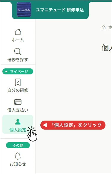 「個人設定」のページを開く画面左の「個人設定」をクリックしてください。